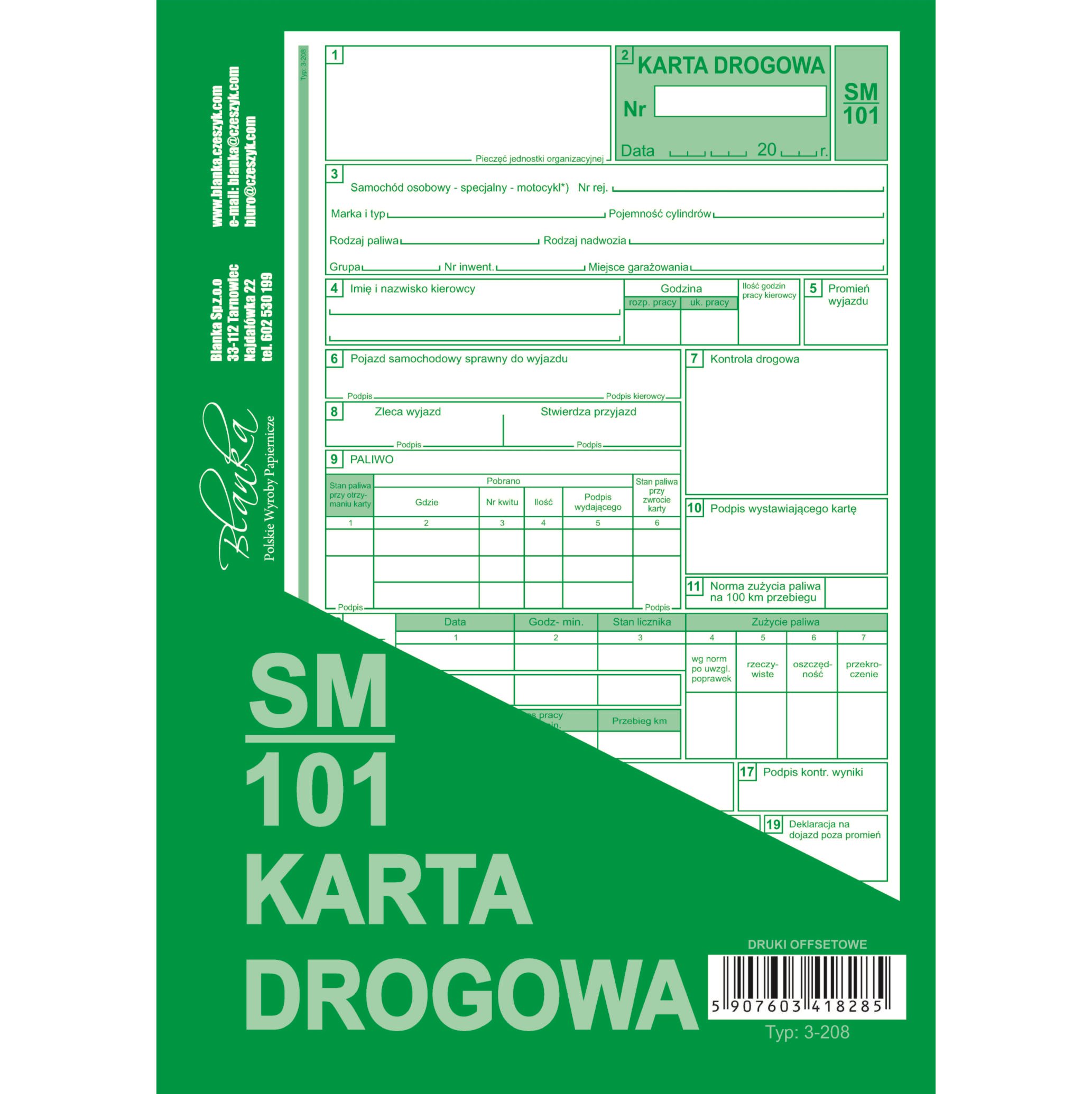 Opis produktuKarta Drogowa SM 101 Samochód osobowyOprawa: bloczek 80 kartekFormat: A5Zastosowanie: Druki samochodowe